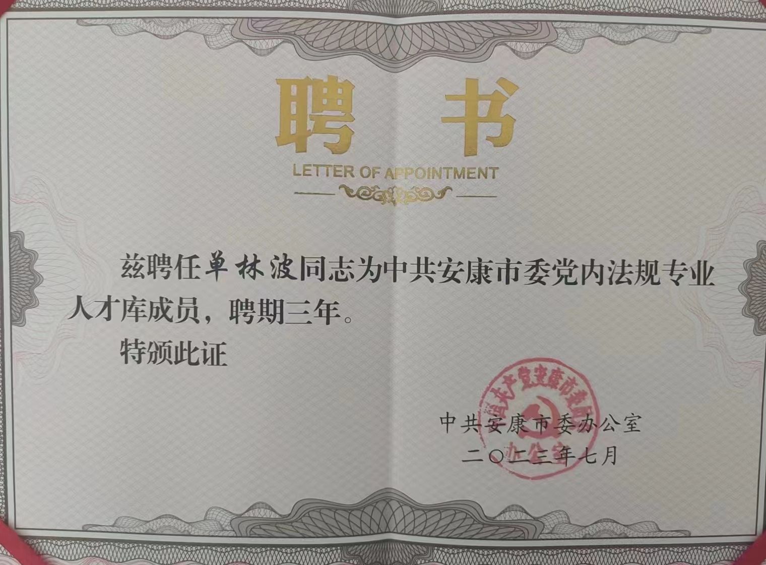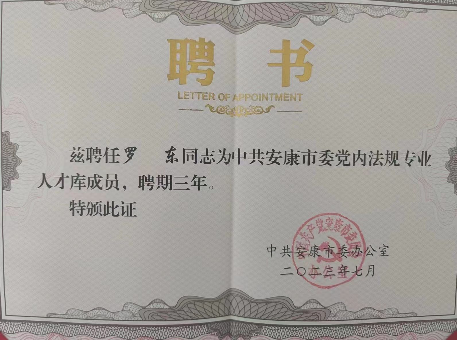 近日,中国共产党安康市委员会办公室发文并举行仪式,聘请我院教师单林波、罗东为安康市委党内法规专业人才库成员。