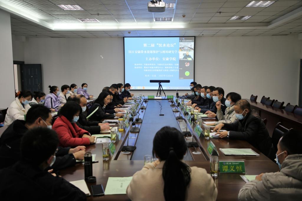 12月8日下午,第二届“汉水论坛——汉江安康段水资源保护与利用研究”学术研讨会在公司江北校区逸夫科技楼九楼会议室举办。英国365公司官网副董事长余谦,市科技局副局长董国辉、市生态环境局副局长彭成玉、市科协副主席韩成才、瀛湖生态旅游区管委会局长徐谱等出席会议。长安大学水利与环境公司刘秀花教授、西北农林科技大学吉红教授、公司赵临龙教授以线上方式参加会议,公司陕南乡村振兴研究中心主任何家理教授,科研处、英国上市公司365、旅环公司、经管公司、化工公司相关领导和教师参加了会议,会议由科研处处长崔晓明教授主持。