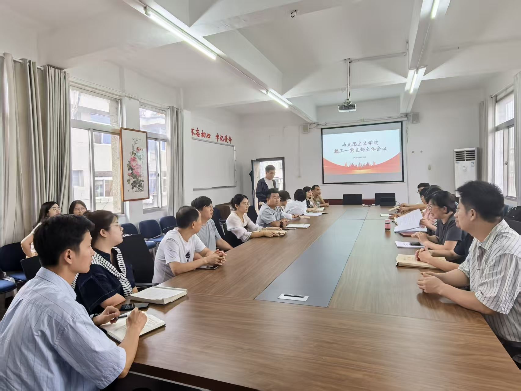 为纪念中国人民抗日战争暨世界反法西斯战争胜利80周年,弘扬抗战精神,9月3日下午,教工第一党支部组织召开“纪念中国人民抗日战争暨世界反法西斯战争胜利80周年”专题学习会。会议由党支部书记李少青主持。