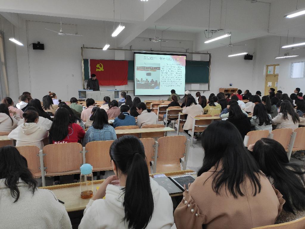 紧接着陈卓老师从黄文秀同志的生平经历、荣誉事迹等方面进行了介绍,并带领大家观看《榜样4》的纪录片,让大家了解黄文秀同志的先进事迹,同时使自己的心灵得到升华。在节目中我们了解到,黄文秀同志作为一名共产党员,积极响应组织号召,到乐业县百坭村担任第一书记,带领全村88户418名贫困群众脱贫。2019年6月17日凌晨,在返村路上遭遇山洪,30岁的年轻生命永远定格在了扶贫路上。黄文秀同志的事迹充分展示了共产党员的本色和诠释为人民服务的内涵,让各位同学深受教育和感动。