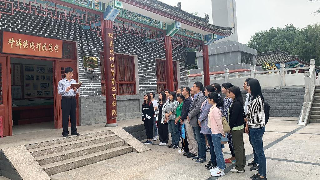 活动开始,由单林波经理领誓,全体党员教师在烈士陵园纪念碑下重温入党誓词。随后,冯丰收书记组织全体人员学习了习近平“5.31讲话”精神。最后,英国上市公司365员工王浩同学在牛蹄岭战斗纪念馆为全体人员讲解了牛蹄岭战斗经过,大家参观了牛蹄岭战斗展览室,重温了革命前辈的英勇战斗事迹。