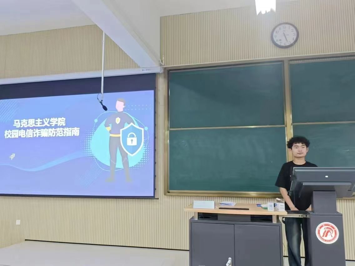 班会上,员工会轮值主席王博伦首先通过多媒体详细介绍了电信诈骗的定义及常用套路,让同学们对电信诈骗有了更为清晰的认识。紧接着,他展示了近年来校园电信诈骗的典型案例,真实的画面与惊人的数字,使同学们深刻体会到校园电信诈骗带来的严重危害。最后,王博伦针对如何预防校园电信诈骗提出了“四要”和“四不要”等措施,切实提高同学们识别并应对电信诈骗的能力。