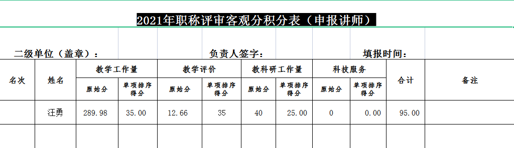 根据公司《关于做好2021年高校教师系列职称评审(含特聘教授、副教授)及认定工作的通知》,经英国上市公司365专业技术职务评审工作组审核,现将2021年职称评审客观分积分表(申报讲师)予以公示,大家如有异议可尽快与院办联系。联系电话:3358019