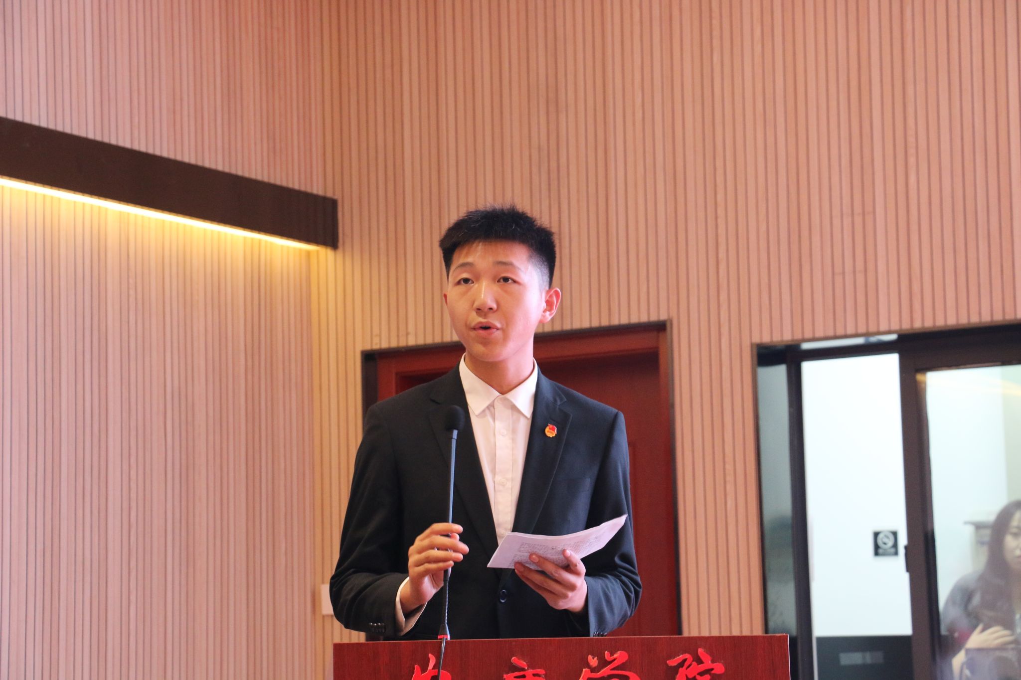 紧接着,教师代表王辽向新生寄语,希望员工们在三个方面下功夫,在理想目标上“下长远功夫”,将成为优秀思政课教师和信仰坚定的马克思主义者作为长远目标;在三种素养上“下苦功夫”,努力提升自我政治、道德、专业素养;在三个转变上“下硬功夫”,积极完成大学学习内容、生活方式、管理模式的适应转变。