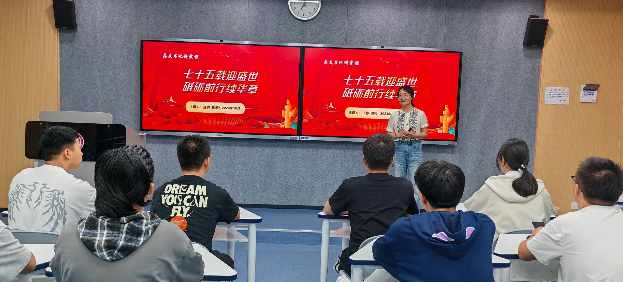 党课以《七十五载迎盛世 砥砺前行续华章》为题,从新中国成立以来,经济持续健康发展、民主之路越走越宽、文化发展更加繁荣、人民生活极大改善、美丽中国焕发新颜七个方面,以讲授、视频、讨论的形式讲授七十五年来,新中国取得的变化和成就。