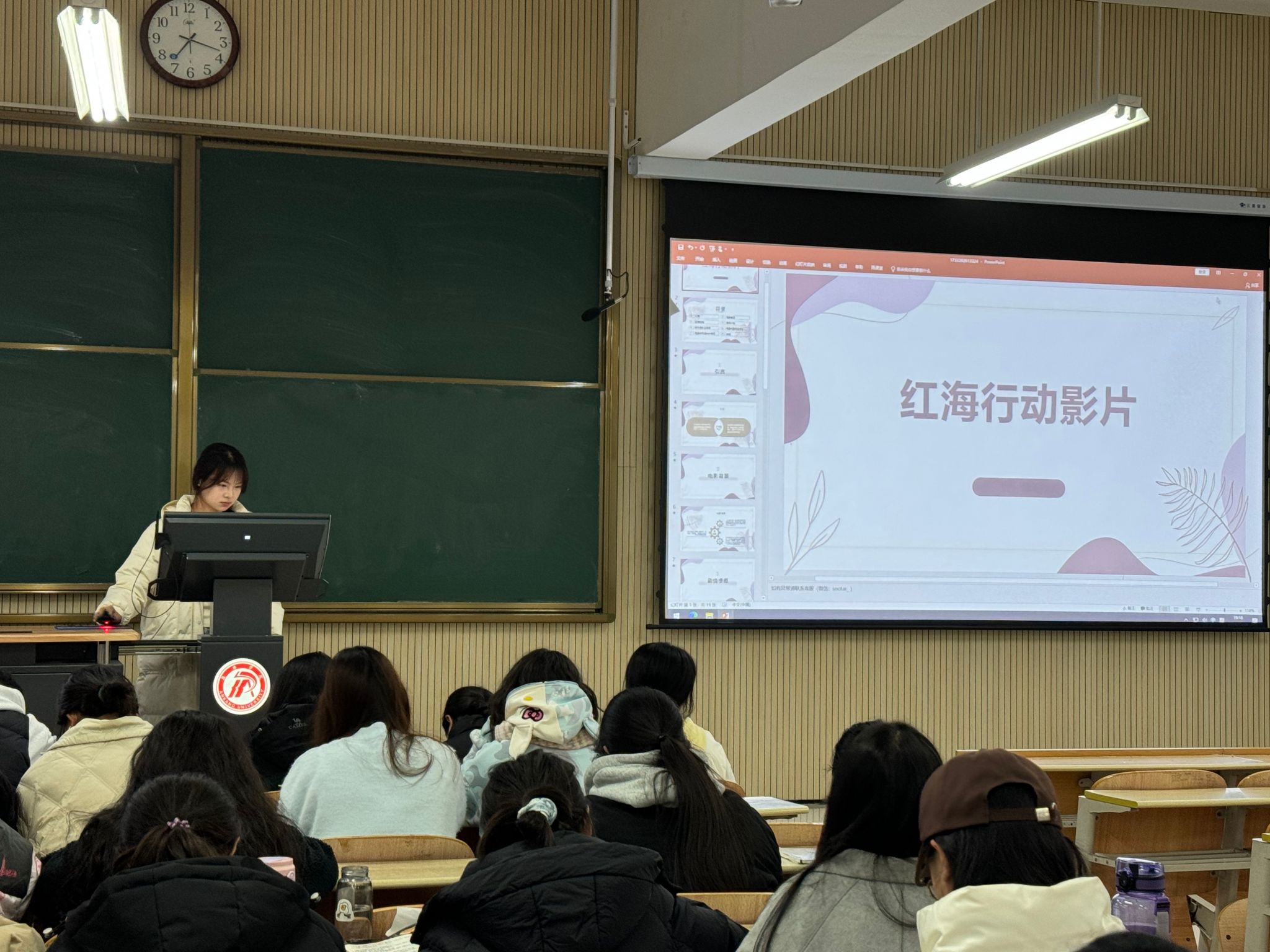 紧接着,王良瑜同学分享了她观看红色电影《红海行动》后的感受。她从影片中的英勇无畏、团结协作、舍生忘死的精神出发,阐述了在新时代背景下,青年学子应如何继承和发扬这种革命英雄主义精神,将个人的理想信念融入到国家和民族的发展大局中去。王良瑜的发言激情四溢,她的话语仿佛一股股暖流,激荡着同学们的心田,让大家深刻感受到了作为新时代青年的责任与担当。