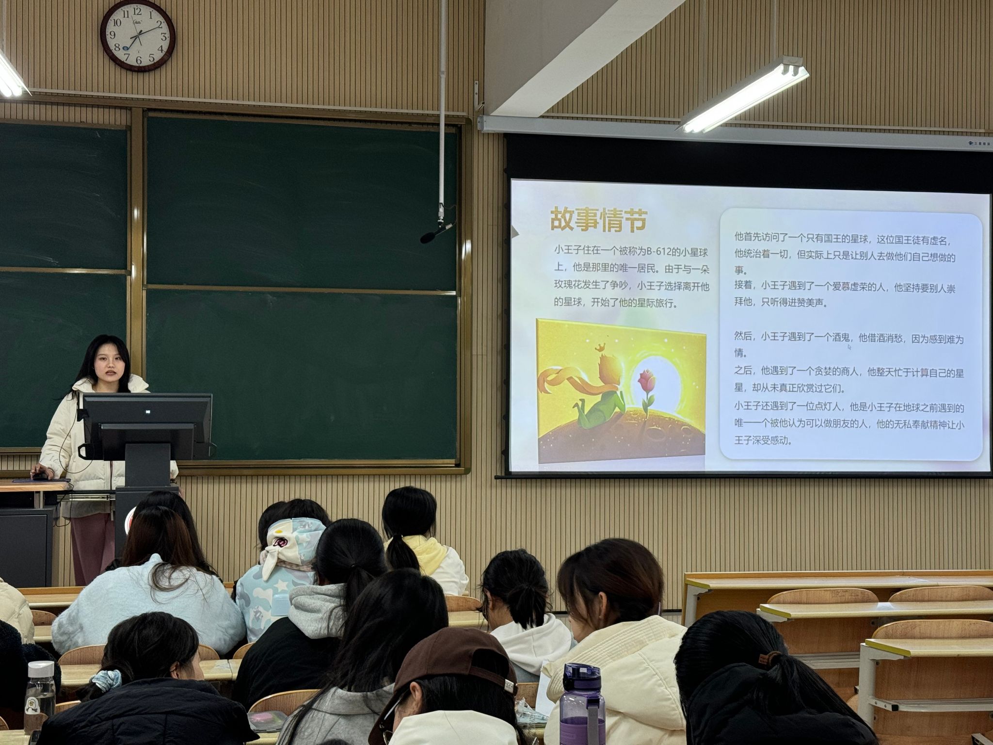 首先,仝怡煊同学以温柔而富有感染力的声音,向在座的同学们讲述了她阅读《小王子》后的心灵触动。她提到,小王子与他的玫瑰、狐狸等角色的故事,不仅是对纯真与爱的颂扬,更是对人生理想与信念的深刻探讨。仝怡煊通过书中的经典台词,引导同学们思考:在纷繁复杂的世界中,如何保持内心的纯净与坚定,追寻属于自己的那颗独一无二的星球。她的分享让在场的每一个人都沉浸在了对美好生活的向往与追求之中。