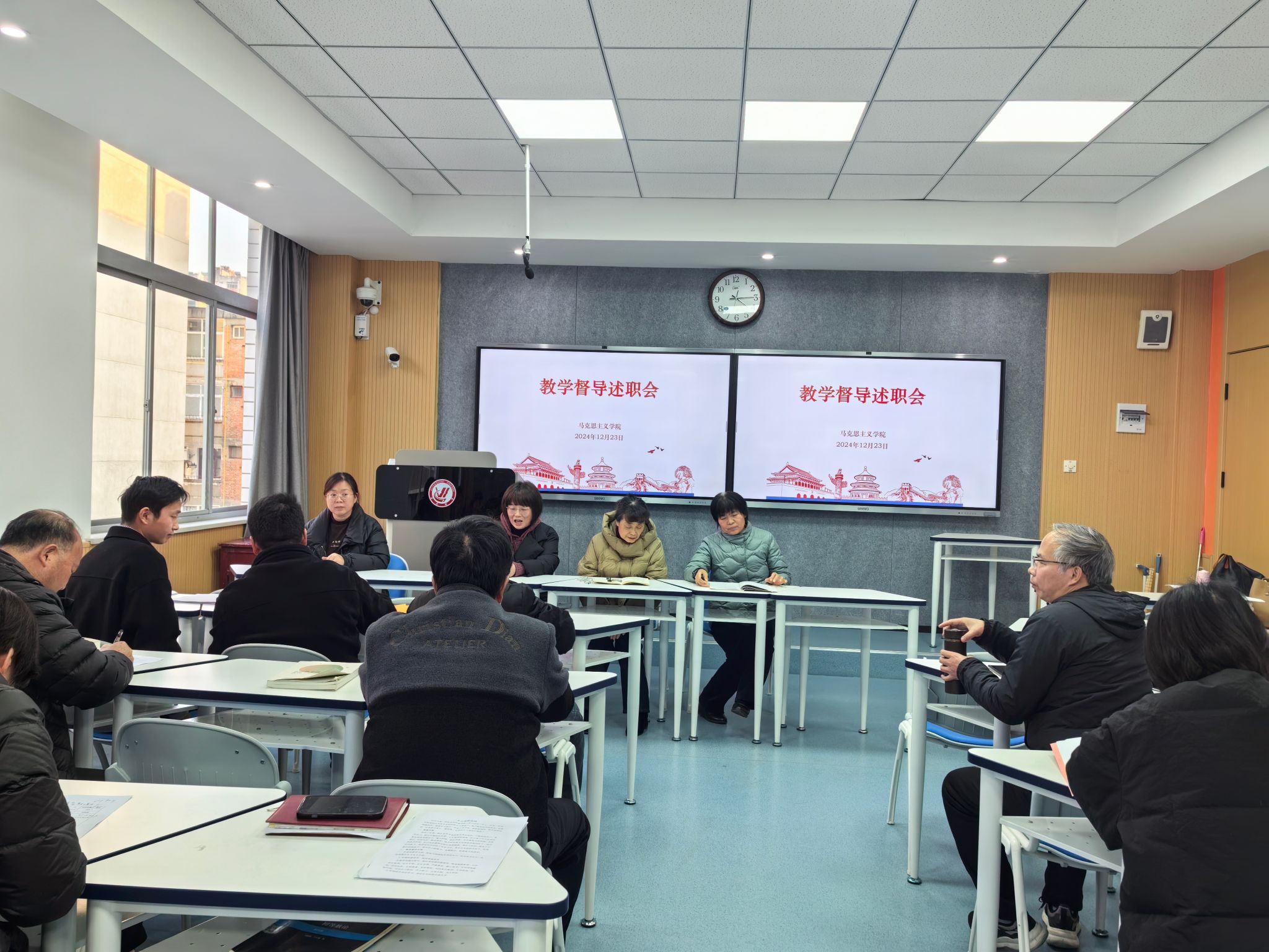 12月23日下午四点,江南校区1305教室内,一场关于公司教学督导考核的专项会议如期举行。本次会议旨在进一步加强公司教学质量监控,提升教学督导工作水平,确保公司产品质量的持续提升。会议由教学经理房春艳主持,纪安玲、雷红霞、项晓静三位老师作为考核对象,全体教师均参加了此次会议。