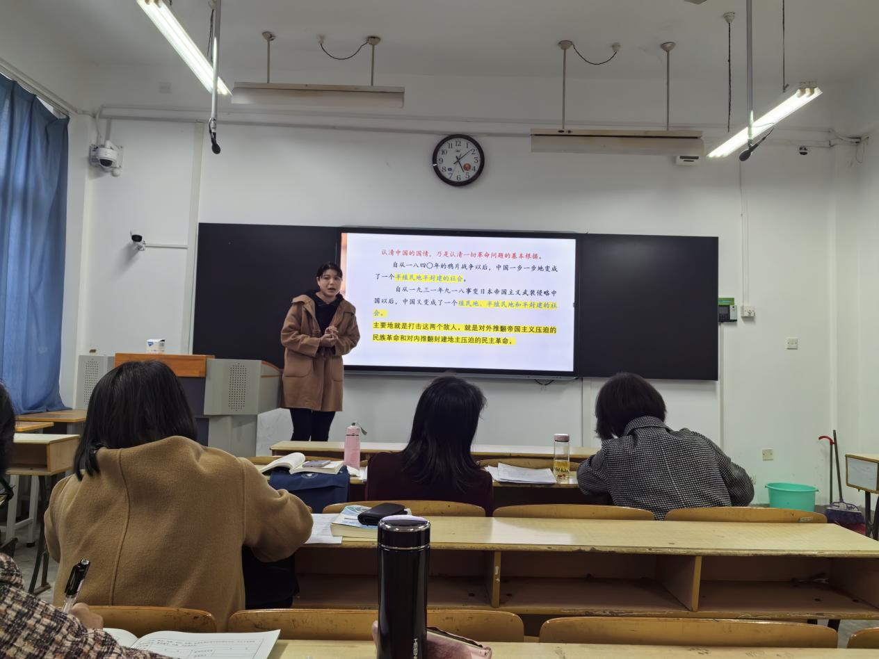 为进一步贯彻落实党的二十届三中全会精神,提升思政课教学质量,11月6日下午,毛泽东思想和中国特色社会主义理论体系概论教研室举行课堂观摩活动,会议由教研室主任演红利主持,教学经理、教学督导、全体无课教师参加了会议。