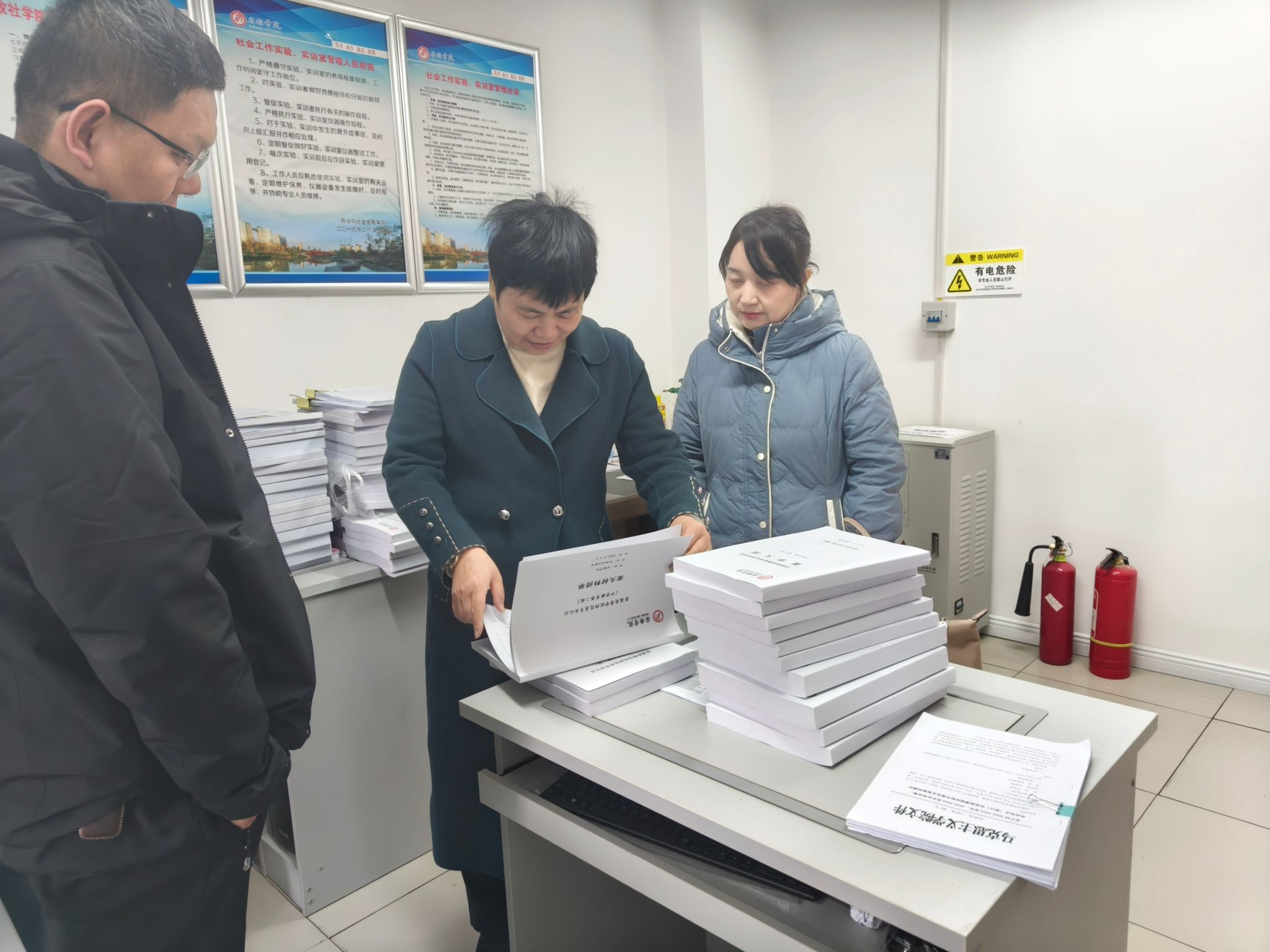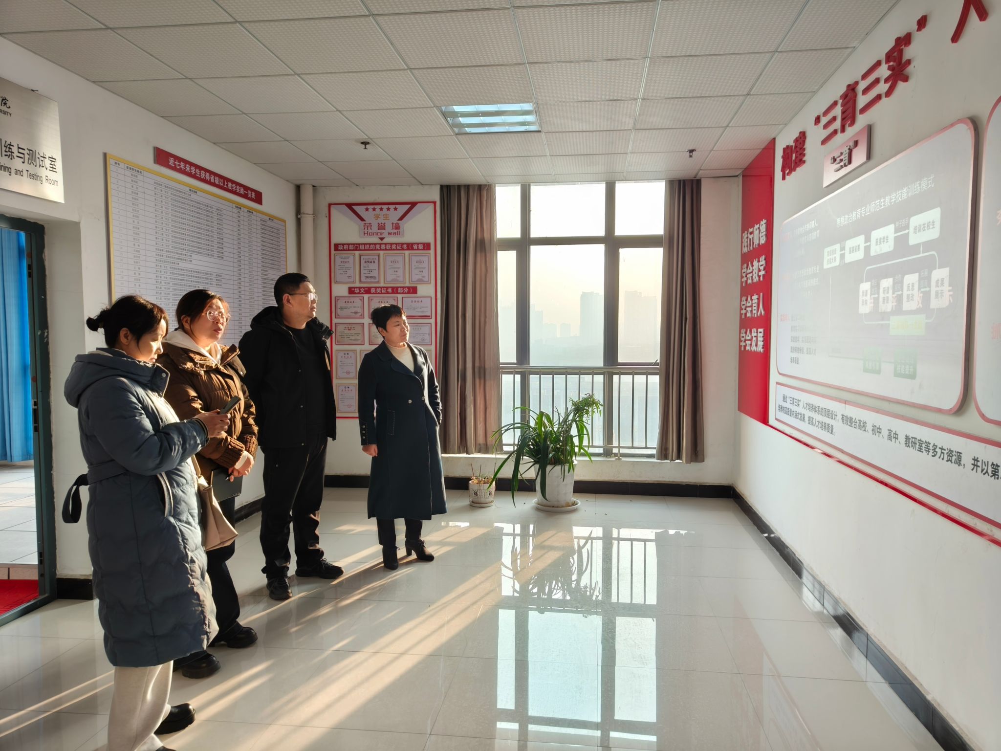 刘维春一行首先参观了公司师范生技能训练室,房春艳介绍了公司“三育三实”人才培养体系的构建情况及思想政治教育专业师范生教学技能训练模式。