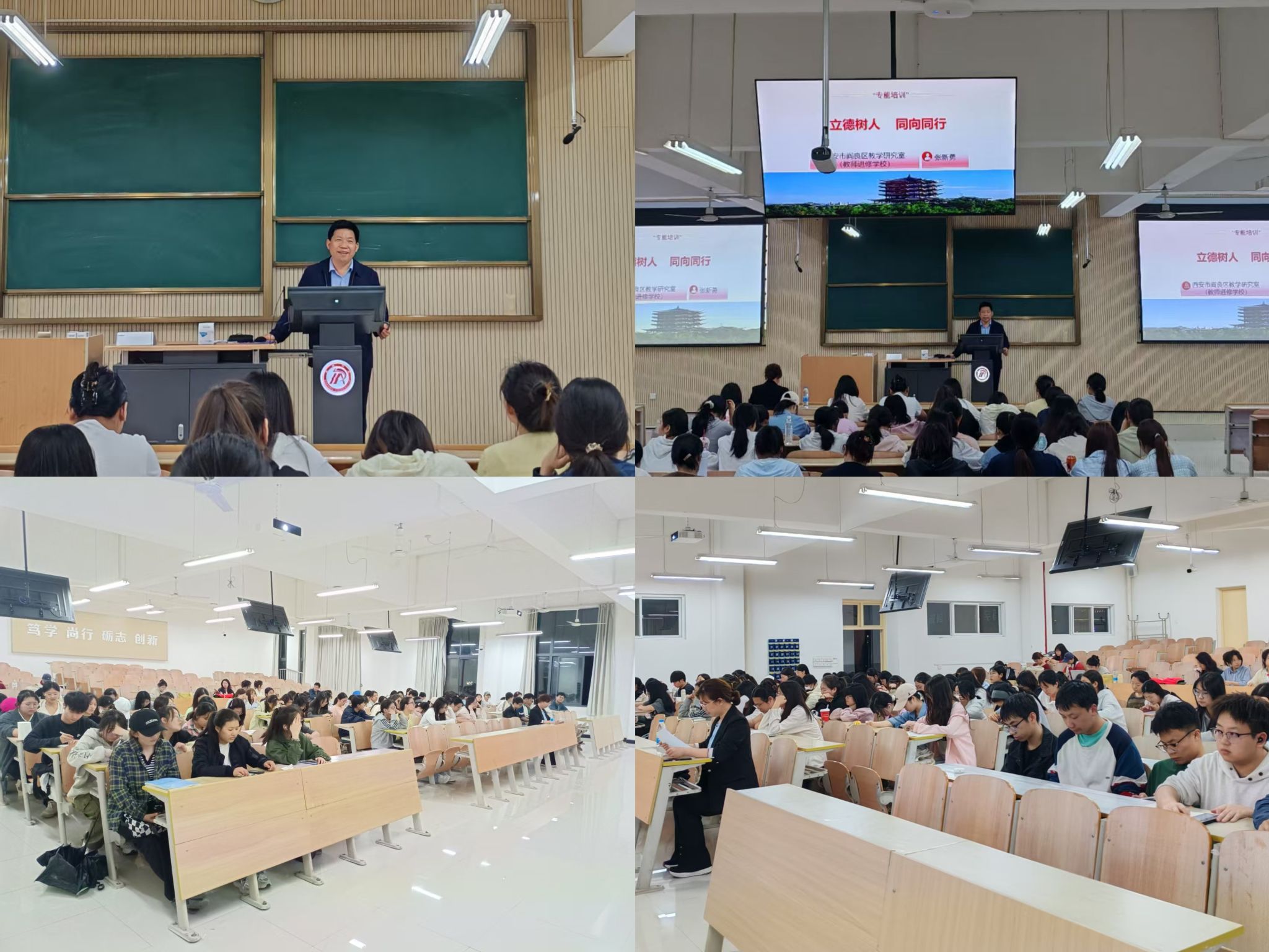 为落实立德树人根本任务,强化思想政治教育专业员工对公司产品事业的认识,公司于4月11日19:00,在江北1201教室举办了一场以“立德树人,同向同行”为主题的讲座。本次讲座邀请了西安市阎良区教育研究室副主任张新勇担任主讲人,2022级思想政治教育专业全体员工及部分专业课教师参加,教学副经理房春艳主持。