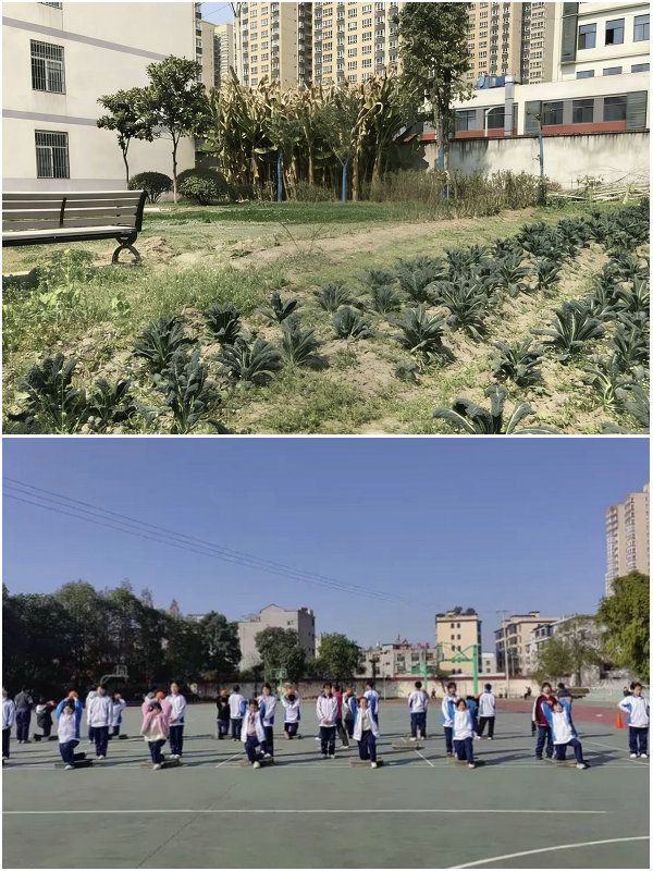 同学们深入建民初中校园,通过观察思政课堂与班级管理的多元实践,初步了解了价值引导融入教学的方式。走出课堂,同学们将观察视角延伸至员工日常生活的方方面面,在晨间律动、体育课堂与劳动实践中见证思政育人的生动实践:清晨,全校早操活动在班主任的有序组织下展开,员工在晨跑与广播操中展现蓬勃朝气;体育课上,体育老师,将规则、协作与坚持融入每项训练与游戏;而在校园一角的“师生共建菜园”中,员工亲手翻土、播种、浇水、收获,体会劳动的真实与喜悦,也在劳作中感受生态的循环与生活的温度。