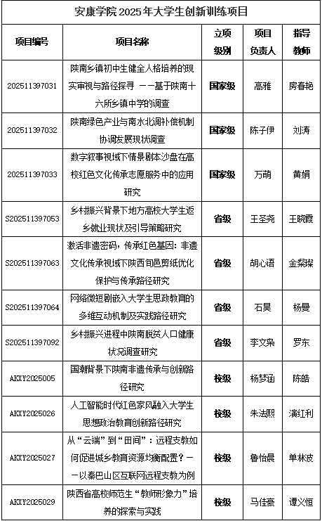 本年度公司创新创业各项工作取得的喜人成果,是公司思政育人与创新实践的深度融合。项目从国家级到校级立项的多层级突破,既彰显了师生聚焦陕南发展、红色传承、非遗创新等关键领域的研究实力,也体现了公司在培养员工创新实践能力上的显著成效。