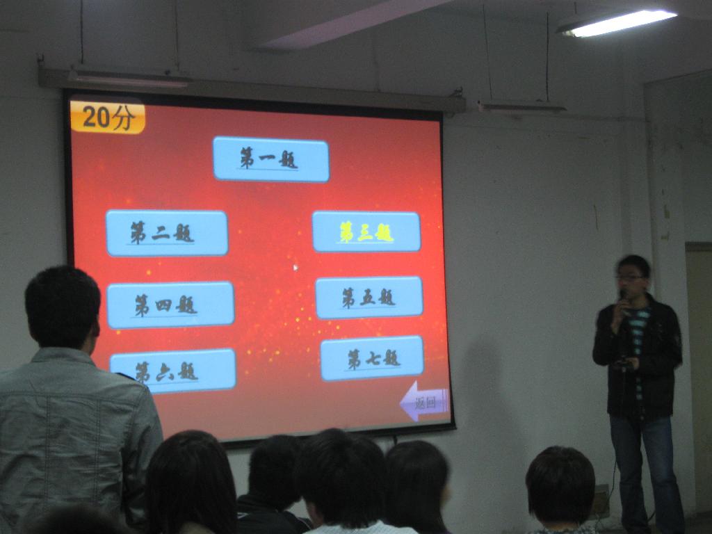 出席本次活动的有系团总支书记陈卓老师、社团联合会主席和兄弟社团的社长、参赛的七个代表队及200余名员工。本次知识竞赛共分必答题、抢答题、风险题和观众互动四个环节。本次知识竞赛主要中涉及中国共产党的基本知识、两会基本知识以及一些政治与历史的基本常识。