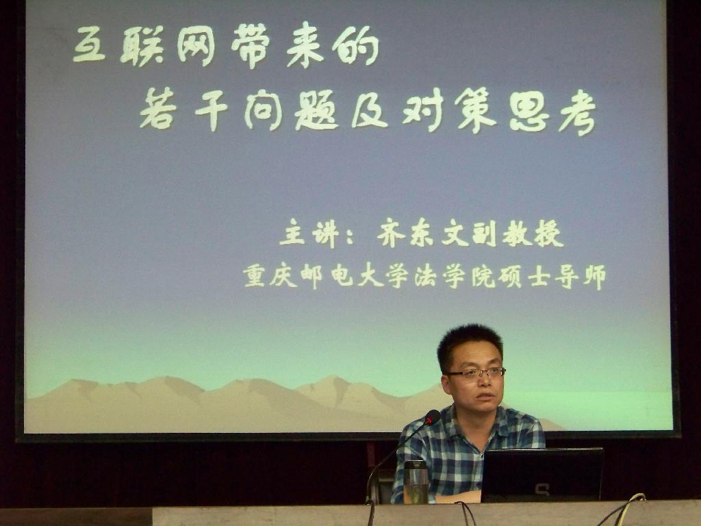 应思想政治理论教学科研部邀请,重庆邮电大学法公司硕士生导师齐东文副教授于4月27日晚7点30分在英国365公司官网图书馆六楼报告厅为公司师生作了题为《互联网带来的若干问题及对策思考》的专题讲座。