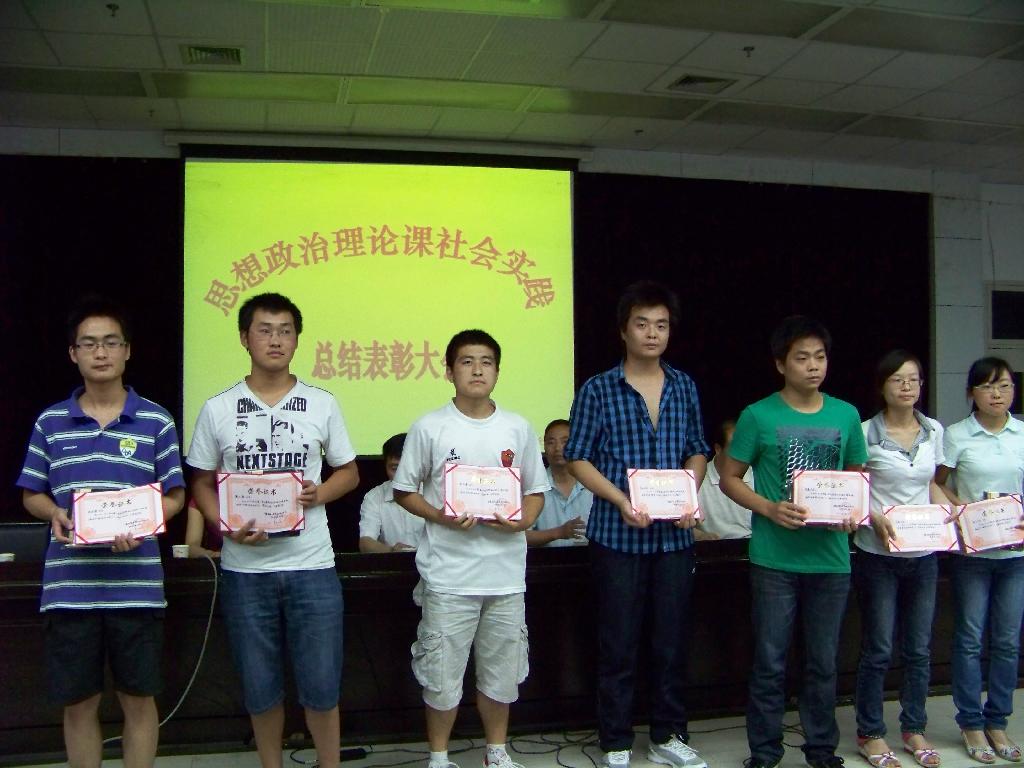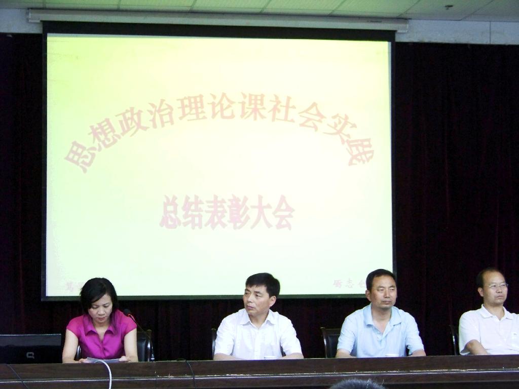 思想政治理论教学科研部副主任吴亚娥就本学年思想政治理论课社会实践活动的情况进行了通报。思想政治理论教学科研部党总支书记谢安国宣读表彰决定。胡鸿晓、何家理、谢安国为“思想政治理论课”社会实践先进个人颁发了荣誉证书和奖品。随后毛泽东思想和中国特色社会主义理论体系教研室纪安玲老师做了社会实践总结交流发言,王鹏等3名员工代表谈了社会实践感想。