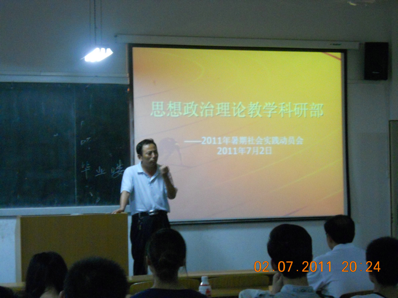 为了搞好“思想政治理论课”实践教学,思想政治理论课教学科研部在前期考察的基础上,组成“延安红色圣地社会实践小组”、“重庆红岩精神社会实践小组”和“汶川见证重建奇迹社会实践小组”三个暑期社会实践小组,并于7月2日晚在8213教室召开了“思想政治理论课”暑期社会实践动员会。思想政治理论课教学科研部主任何家理,副主任吴亚娥,六位带队老师和从全校11各院系选拔的四十多位同学参加会议。