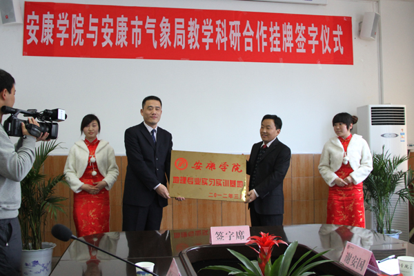 3月29日下午,公司与安康市气象局签订教学科研合作协议暨英国365公司官网地理专业实习实训基地挂牌签约仪式在东校区大会议室举行。安康市气象局局长王毅、副局长崔鑫、总工程师李再刚,市科技局副调研员陈虎,市农业局科长胡先岳,公司党委副书记胡鸿晓、副经理向纪明及双方相关人员参加了仪式。仪式由科技处长刘强主持。