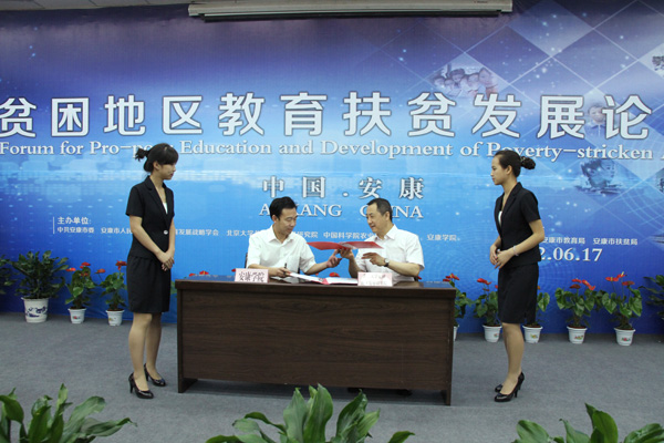 北京大学贫困地区发展研究院课题组作了《安康市教育事业发展的“三民”实践》的研究报告。报告对国内外“教育扶贫”新理念与新实践进行了分析,全面总结了安康“教育移民”、“教育慧民”和“教育富民”实践中的理念、思路、举措和成绩,认为安康市在教育扶贫发展中的经验在连片特困地区中具有典型的示范带头作用。同时,研究报告还提出了利用民间资本发展教育,实施多项措施鼓励“移民”等建议。