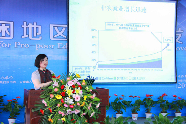 中国科公司农业政策研究中心副主任张林秀研究员在《贫困地区扶贫发展新视角:人力资本建设》专题报告中结合多年研究成果,从外部冲击对贫困农村外出务工劳动力就业的影响、中国经济结构调整所面临的挑战与高中教育、贫困农村儿童的能力发展状况及其影响因素等多个角度出发,分析了我国贫困地区教育发展的现状,提出了加大教育投入,大力改善农村学前教育服务质量,关注农村寄宿公司员工营养健康,普及贫困地区高中阶段免费教育,加大对贫困农村劳动力专业技术培训力度等建议。