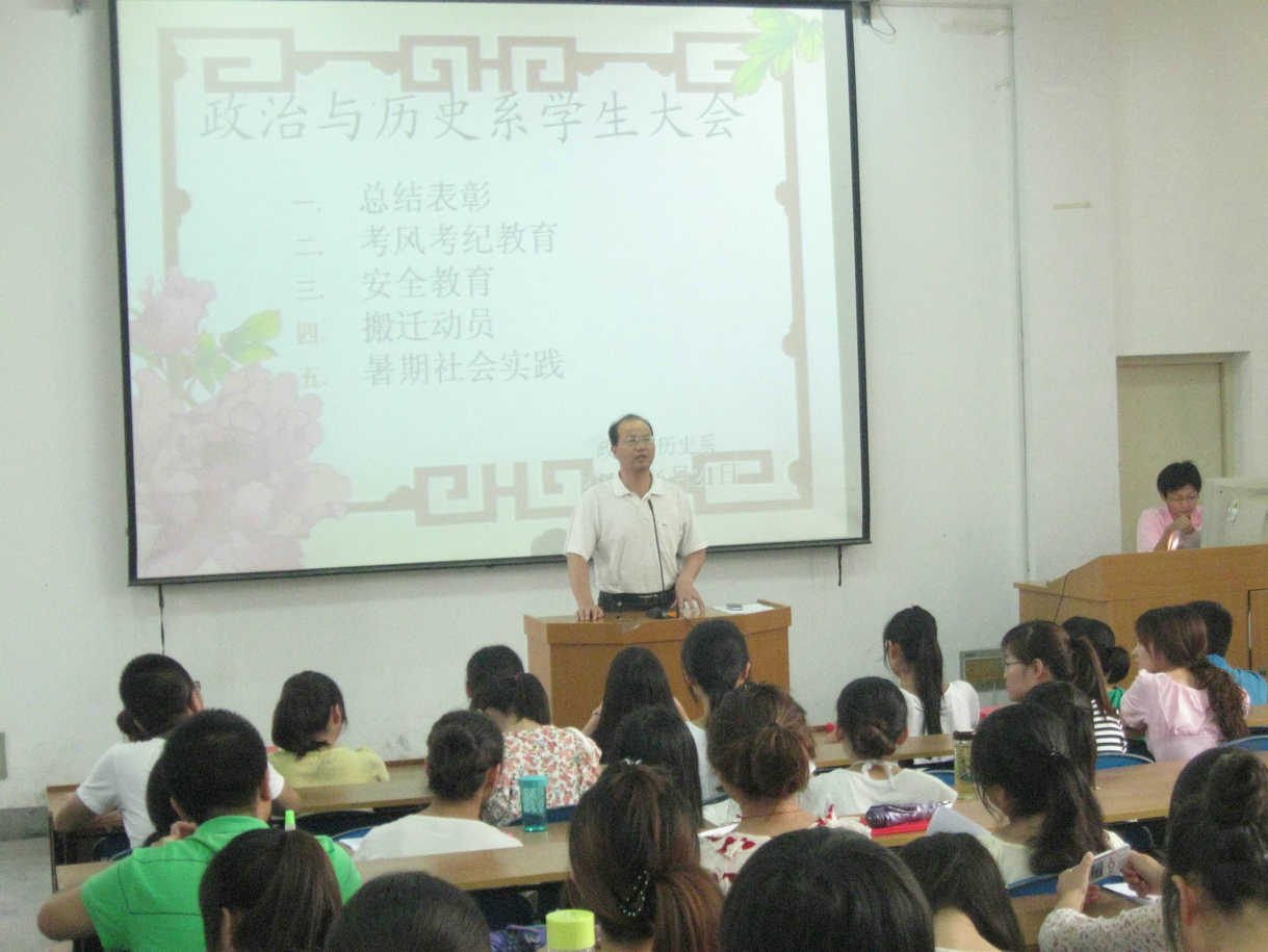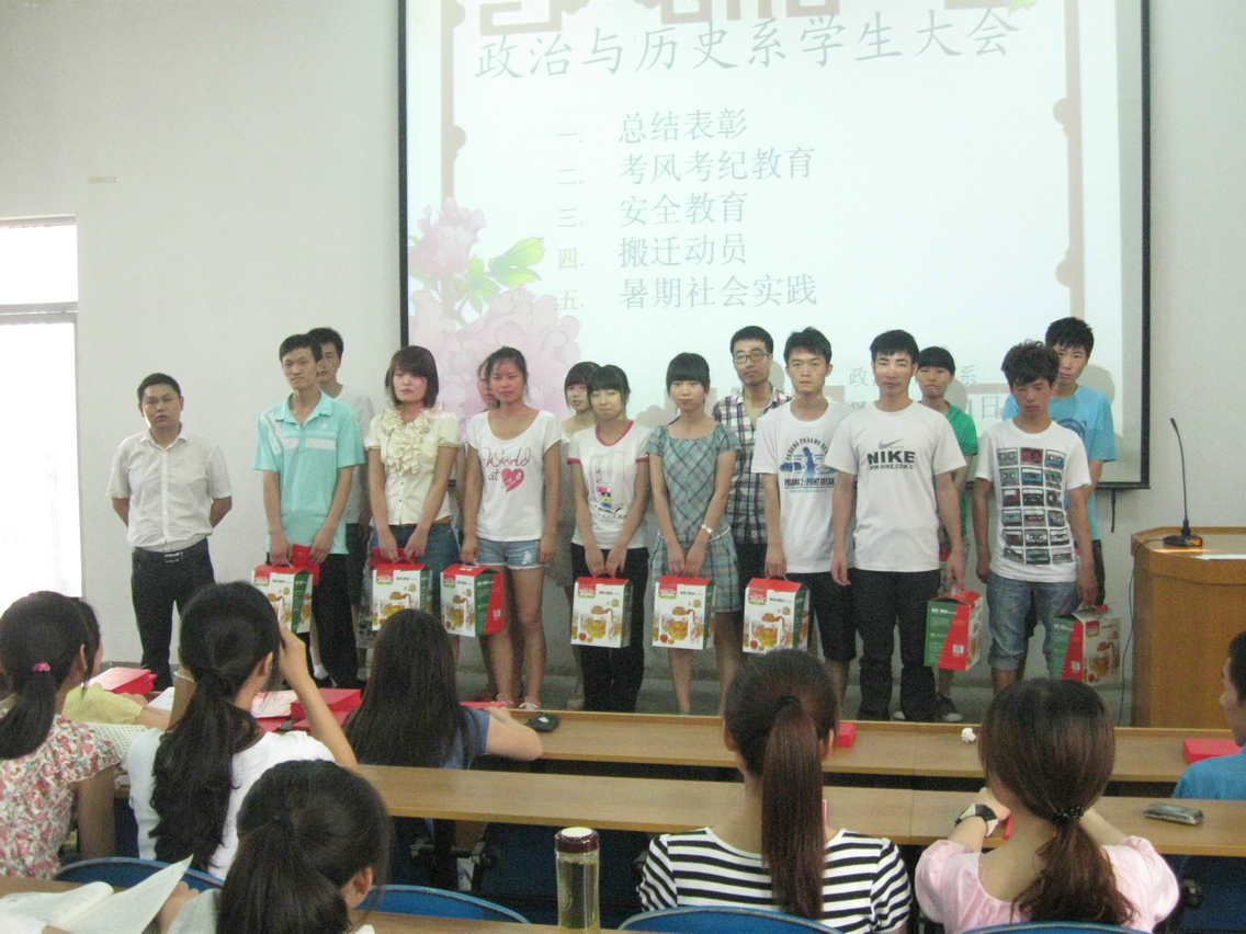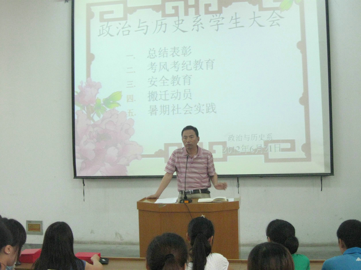 6月21日上午八点。政治与历史系在8103教室召开2011—2012学年度员工表彰暨考风考纪动员大会。会议由系团总支书记陈卓老师主持。