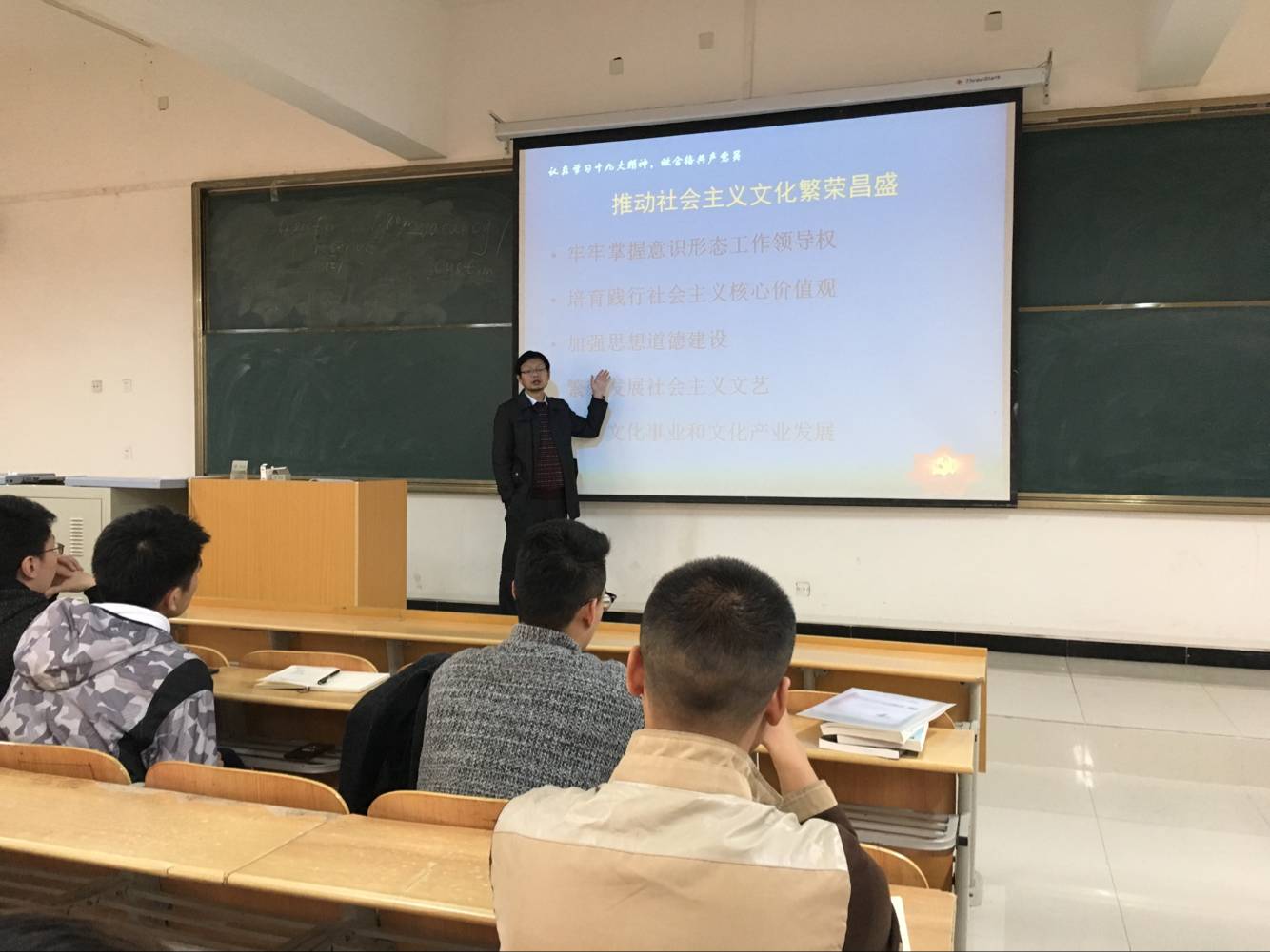 为切实做好学习贯彻,深刻领会党的十九大精神,政治与社会发展公司员工党支部于2017年11月8日在江北校区1号楼1204教室召开学习党的十九大精神专题会议。会议分为学习解读十九大报告和学习《员工党员发展手册》两个部分。主持此次会议的是员工党支部书记、学工办主任陈卓老师。公司全体员工党员,发展对象、积极分子参与了本次会议。