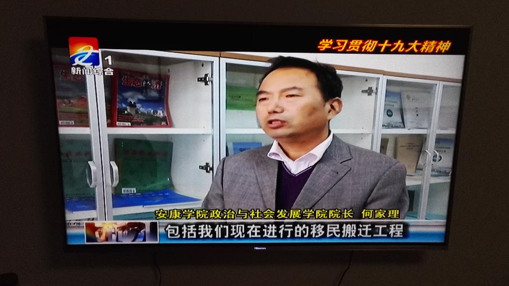 11月19日晚20:25 安康市电视台在一台“学习十九大精神专栏”中播出了采访内容。这是继十九大之后政社公司和思政部举办十九大精神展览、上报教育厅体会文章、白河农村宣讲、专题学习、员工视频采访后的又一次宣传十九大精神活动。