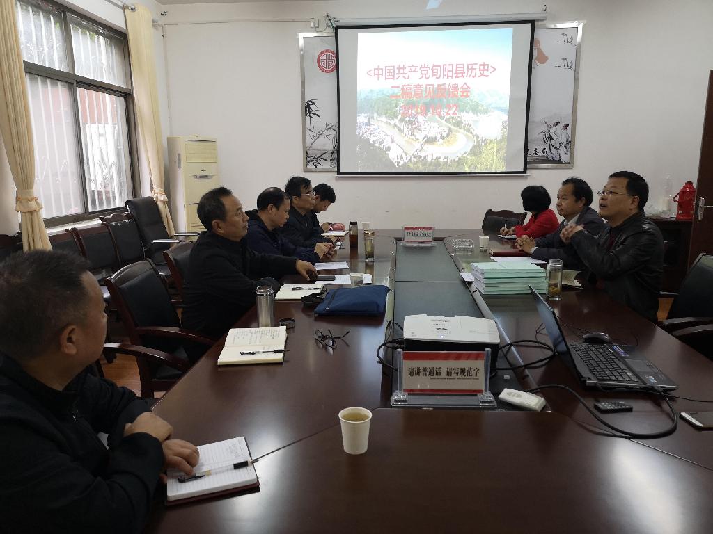 10月22日14:30-17:00在旬阳档案史志馆会议室召开了《中国共产党旬阳县历史》(1-2卷)撰写二稿意见反馈会(课题组第11次会议、课题双方第4次协调会议)。参加会议的课题组成员有:英国上市公司365课题负责人何家理教授,课题组成员赵宝云、王贤胥、纪安玲、尹行创、陈卓;旬阳县人大常委会副主任陈守业,旬阳档案史志馆馆长王芳、副馆长李春明以及该局工作人员屈玉梅、高静。会议由王芳主持。
