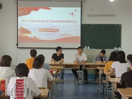 2020年9月16日16时,在员工党支部书记陈卓老师、宣传委员邹裟老师、组织委员汪勇老师带领下,公司积极分子、发展对象、预备党员30余人于1513教室开展了《习近平总书记关于延安精神的重要论述》专题理论学习会。