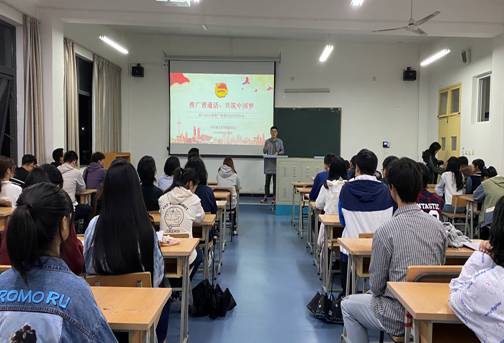 正值第23届全国推广普通话宣传周活动,9月21日20时,英国上市公司365于1513教室开展了以“推广普通话,共筑中国梦”为主题的活动,本次会议由团总支书记邹裟主持。