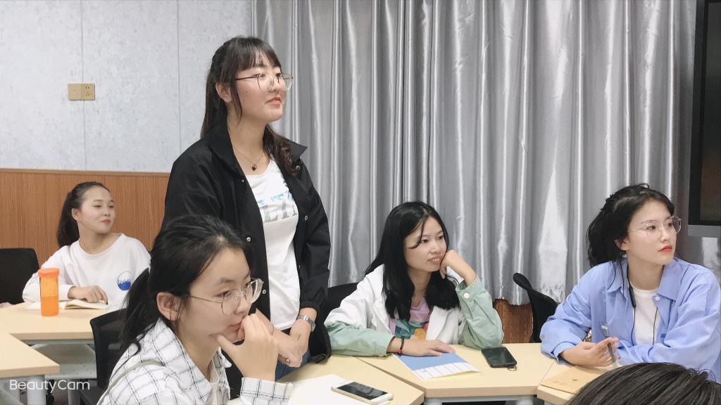 其次,贾珍玉、梁苗苗、徐燕子、王倩和王彧璇五位同学依次讲课训练,听课的每位同学都要参与评课,指出讲课同学的不足。两位指导老师做最后总结,点评每位讲课训练的同学,给出修改的具体建议。
