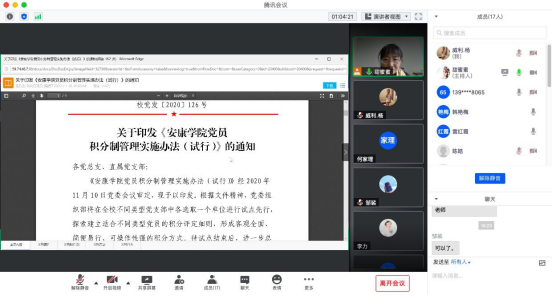 2020年11月18日下午16:15,公司党总支通过腾讯会议平台开展了主题党日活动。会议由田静书记主持,全体党员参会。