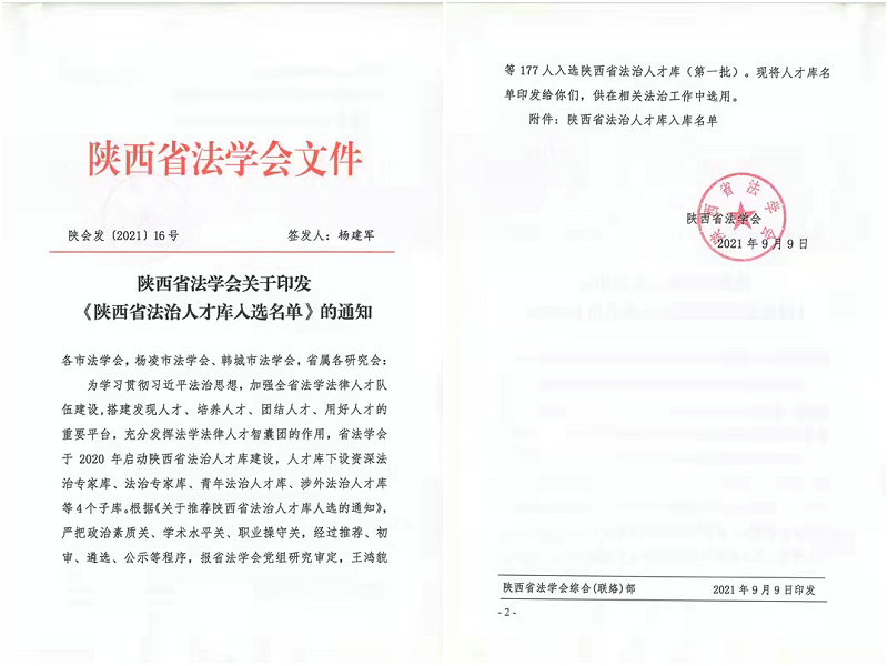 经安康市法学会推荐,陕西省法学会初选、遴选、公示,省法学会党组研究审定,公司吴亚娥、单林波、冯炜娟三位教师入选陕西省法治人才库(第一批)。