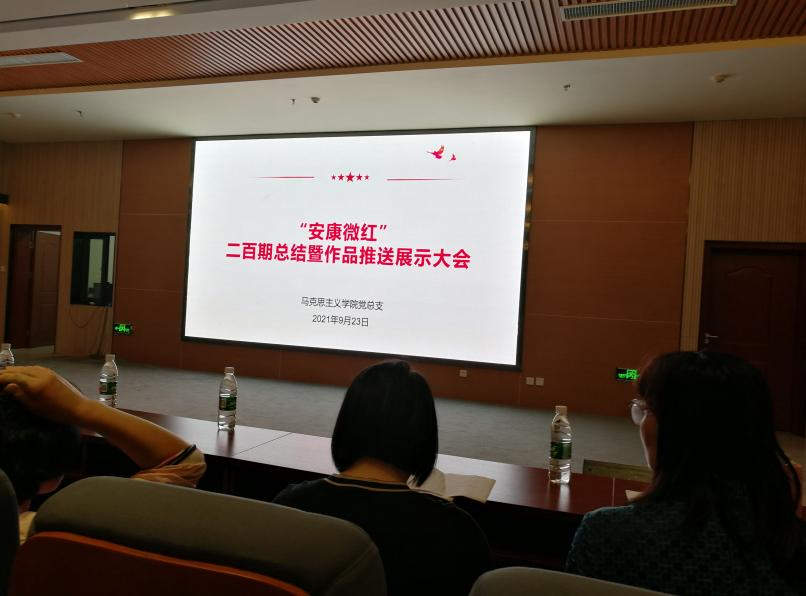 2021年9月23日下午,公司网络思政育人平台“安康微红”二百期总结暨作品推送展示大会在江北校区图书馆报告厅举行。“马原”课教研室纪安玲老师作为“安康微红”的创立者,在“安康微红”二百期总结大会上做交流发言,教研室全体老师参加会议并就相关议题交换看法、提出建议。