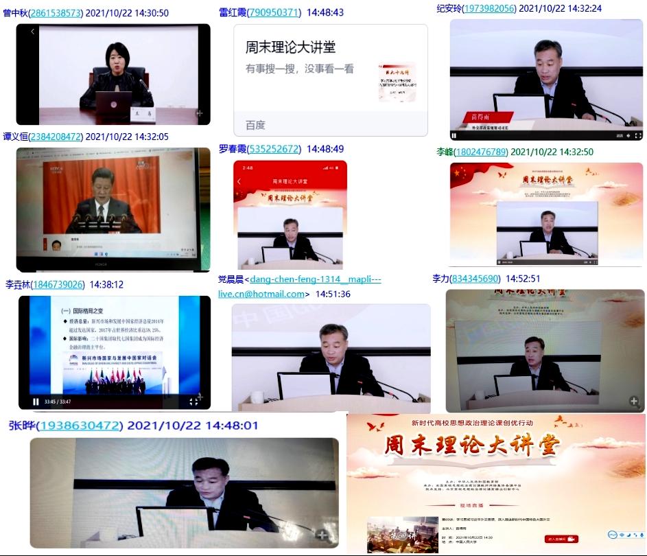 2021年10月22日下午,“马克思主义基本原理论”课教研室开展周末理论学习活动。全体教师在全国高校思政课教师网络集体备课平台参加了理论学习,集体学习由外交部政策法规司司长苗得雨同志在中国人民大学在线讲授的《学习贯彻习近平外交思想,深入推进新时代中国特色大国外交》。