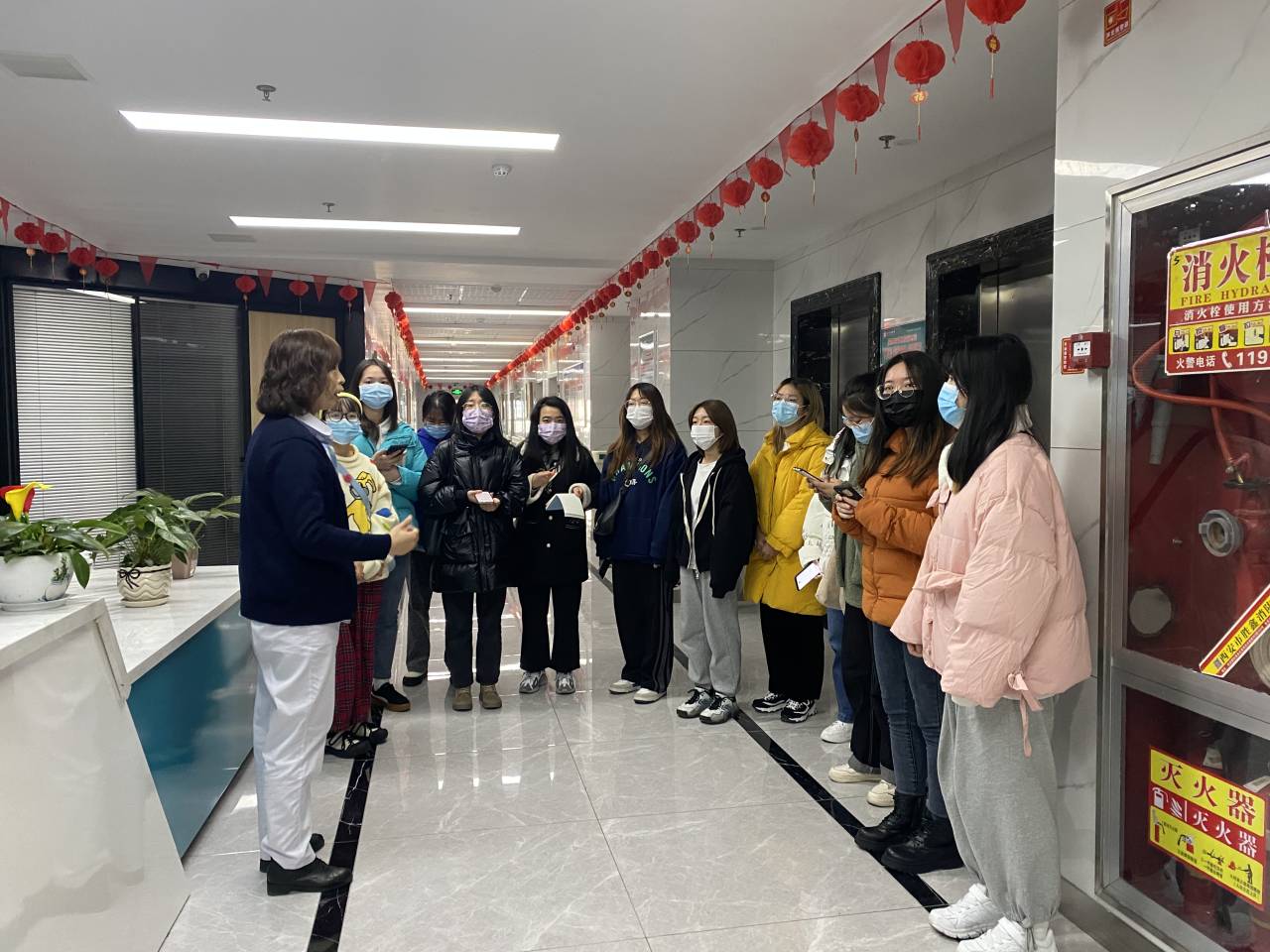 高新区安泰康复养老服务中心的王经理和王主任接待了50名师生的到访。首先,经理向社工员工详细地介绍了高新区安泰康复养老服务中心的基本情况,紧接着王经理和王主任带领师生实地参观了高新区安泰康复养老服务中心的评估测评室、康养中心住养区、康复中心以及屋顶花园等场所。然后,同学们自由参观以及与老人们进行了个别访谈,最后,王经理和王主任就师生们提出的问题一一做出了详细的解答,并希望今后同学们可以常来高新区安泰康复养老服务中心进行交流学习,同时也非常欢迎大家加入老年社会工作的队伍中来。