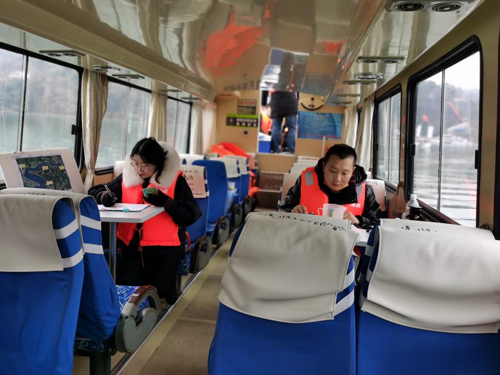水上作业开始前,课题组负责人何家理教授介绍了本次采样工作的重要性,本次采样工作是2021年采样工作的最后一次,对于形成全年水质冬夏检测数据对比反馈意义重大,所以经过多方协调争取,在抗疫形势严峻的情况下最终确定必须于12月底完成冬季采样工作。接着,何教授强调了本次采样工作注意事项:一是严格要求课题组人员牢记安全作业,包括舱内记录人员在内必须穿戴救生衣;二是疫情期间进行采样工作时,务必全程佩戴口罩;三是注意环节的规范性操作,每次取样后器皿一定要记住用购买的纯净水清洗。