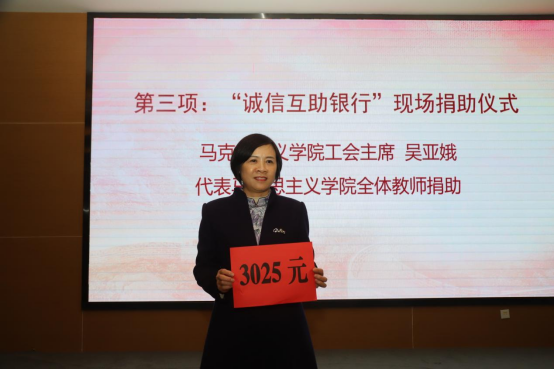 “诚信互助银行”始于1997年开始的“半年节约两元钱,帮助失学儿童返校园”活动,2004改名“诚信互助银行”。马克思主义公司分会全体会员资助活动已持续24年,通过“诚信互助银行”的捐助,发扬了师生、同学之间的互助精神,促进了良好学风、教风的形成,营造了良好的育人氛围,打造了全员育人常态化新模式,获得了社会的广泛认可。