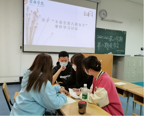 2022年3月9日16:10,马克思主义经典读书会于江北校区1513教室举行了本学期的第二次活动,本次活动以“丰县生育八孩女子事件”为话题展开学习讨论。教工二支部书记韩艳梅老师莅临了本次活动,邓辉、程颖等老师以及读书会成员共计46人参加了此次活动。