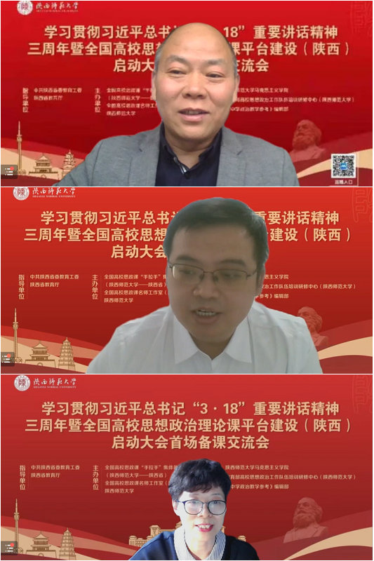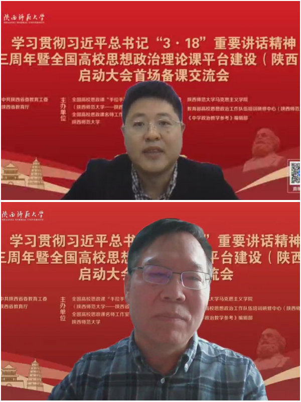 本次教学沙龙活动依托全国高校思政课“手拉手”集体备课中心(陕西师范大学——陕西省)首场线上备课交流会进行。全体思政教师在线聆听了复旦大学英国上市公司365教授、国家教学名师,教育部高等公司教学指导委员会(马克思主义理论类)委员,教育部高等公司思想政治理论课总教指委副主任委员高国希教授;西安交通大学英国上市公司365经理燕连福教授;西北大学英国上市公司365常务副经理王强教授;陕西师范大学英国上市公司365副经理张帆教授;陕西省教育科学研究院基础教育研究中心副主任夏波老师的主旨报告和思政课改革创新经验分享。在线观摩了第二届全国高校思政课教学展示特等奖获得者西安工程大学郭松副教授和西安高新一中正高级教师李育民的教学展示。随后,公司思政课教师在线交流了学习观摩心得。