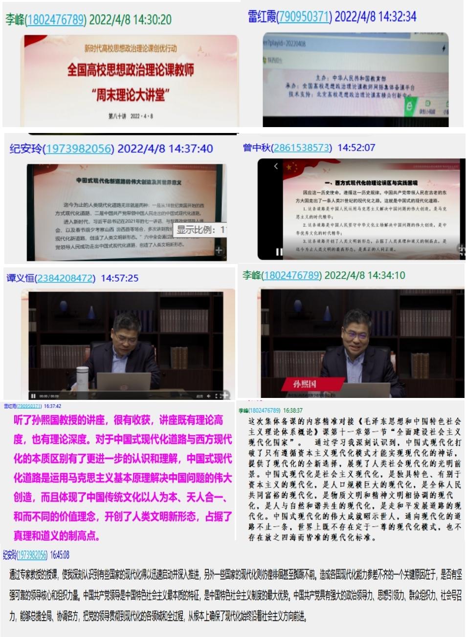 教研室无课教师在全国高校思政课教师网络集体备课平台参加了理论学习,集体学习教育部高校思政课教学指导委员会委员、北京大学习近平新时代中国特色社会主义思想研究院常务副经理孙熙国的直播讲座《中国式现代化新道路的伟大创造及其世界意义》。