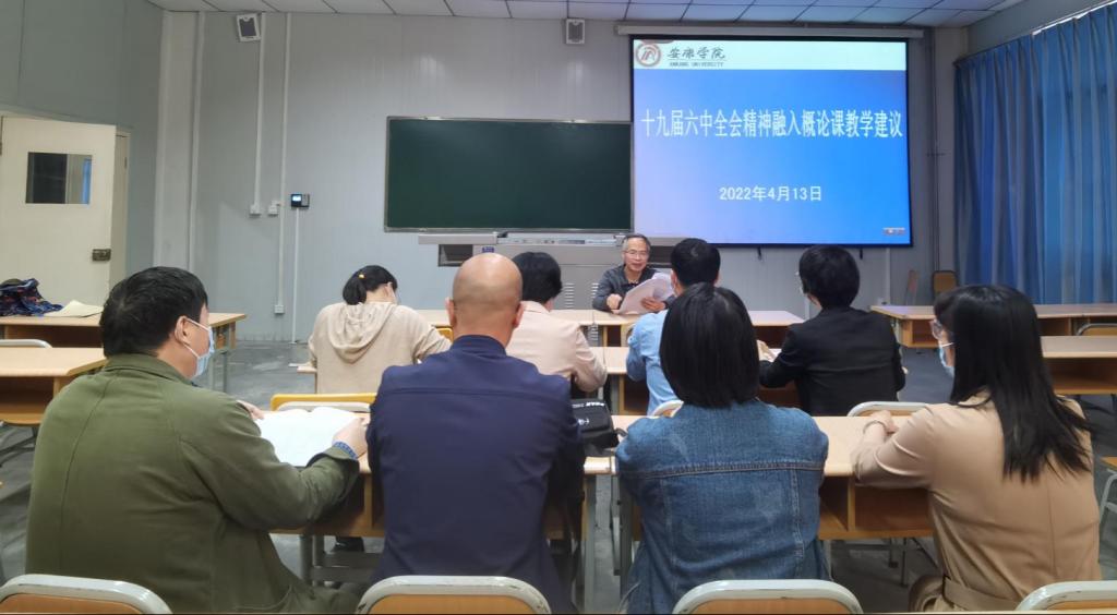 2022年4月13日下午,毛泽东思想和中国特色社会主义理论体系概论课教研室开展集体备课活动,深入研讨学习教育部高校思政课教学指导委员会提出的《党的十九届六中全会精神融入毛泽东思想和中国特色社会主义理论体系概论课的教学建议》。