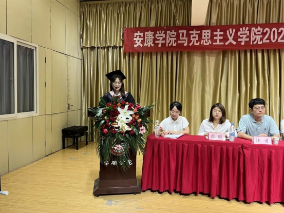 2022届毕业生代表社会工作专业许瑞雪发言。她深情回顾了自己来校求学的四年时光,代表全院毕业生感谢母校为员工成长成才所提供的优良氛围与环境,感谢老师、辅导员的辛勤培育。并表示,在时代的新长征路上,把个人的理想追求融入党和国家事业之中,以梦为马,不负青春,用奋斗不息去践行民族复兴和中国梦。最后再次祝愿母校再展宏图、全体老师身体健康、毕业生一帆风顺。