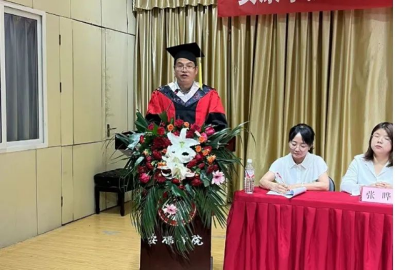 随后,青年教师代表张晔发表讲话,她提出了对毕业生殷切的希望和对未来学习生活中的建议,希望同学们永远珍藏老员工活的难忘时光,珍惜彼此结下的深情厚谊,不断学习,提升自我;敬重身边的每一位人、尊重身边的每一位人;对人简单珍惜,对事认真踏实,不忘初心、勇往直前。努力使自己成为社会进步的强大动力,努力创造无愧于历史和人民的新业绩。