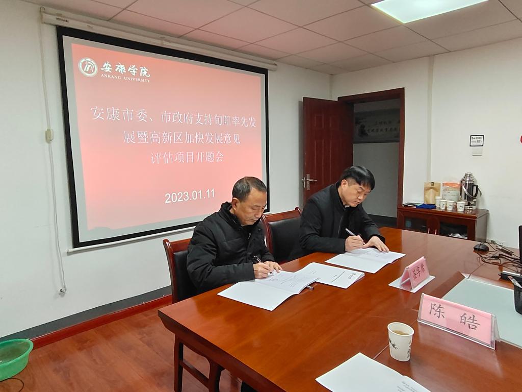 会议有三项主要议题。第一项是何家理代表项目组与李向阳局长就“安康市委、市政府支持旬阳率先发展暨高新区加快发展意见评估”项目签订了项目协议书。