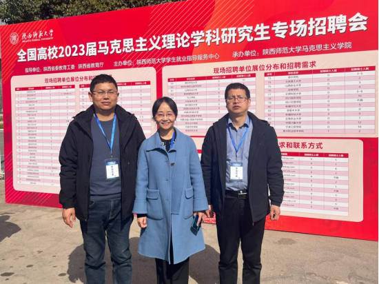 为广泛吸引高层次人才,提高思政课教师人才质量,加强公司教师队伍建设,3月4日,公司赴陕西师范大学参加马克思主义理论学科研究生专场招聘活动。