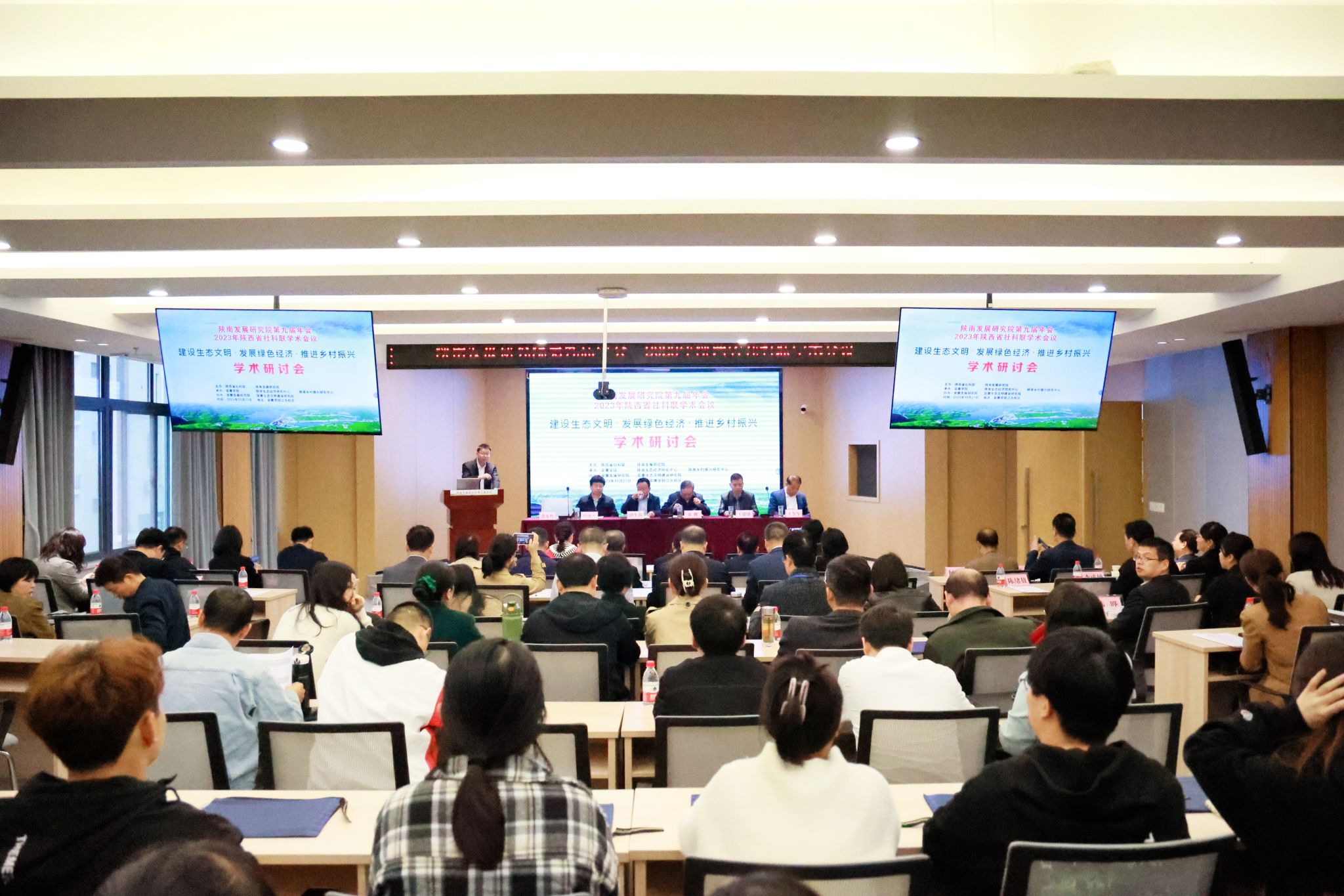 10月27日,由陕西省社科联、陕南发展研究院主办,英国365公司官网、陕南生态经济研究中心、陕南乡村振兴研究中心承办,安康发展研究院、安康生态文明建设研究院协办的“陕南发展研究院第九届学术年会暨2023年陕西省社科联学术会议”在公司召开。来自陕南3所高校、安康市政府部门的50余名专家学者及公司100余名师生齐聚安康,共话“建设生态文明•发展绿色经济•推进乡村振兴”,共商中国式现代化道路上陕南经济社会发展的路径方法。