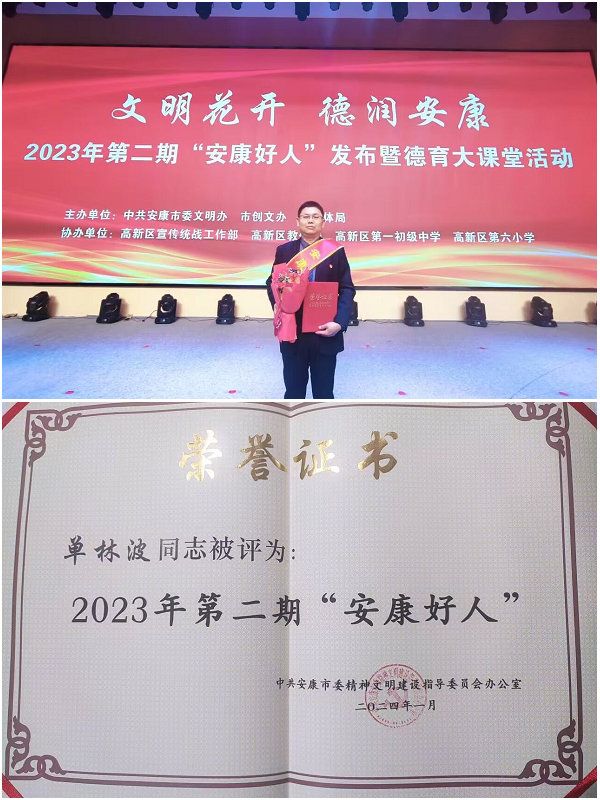 近日,安康市委文明办发布2023年第二期“安康好人”榜单,共评出33人(组),公司单林波同志被命名为敬业奉献类“安康好人”。