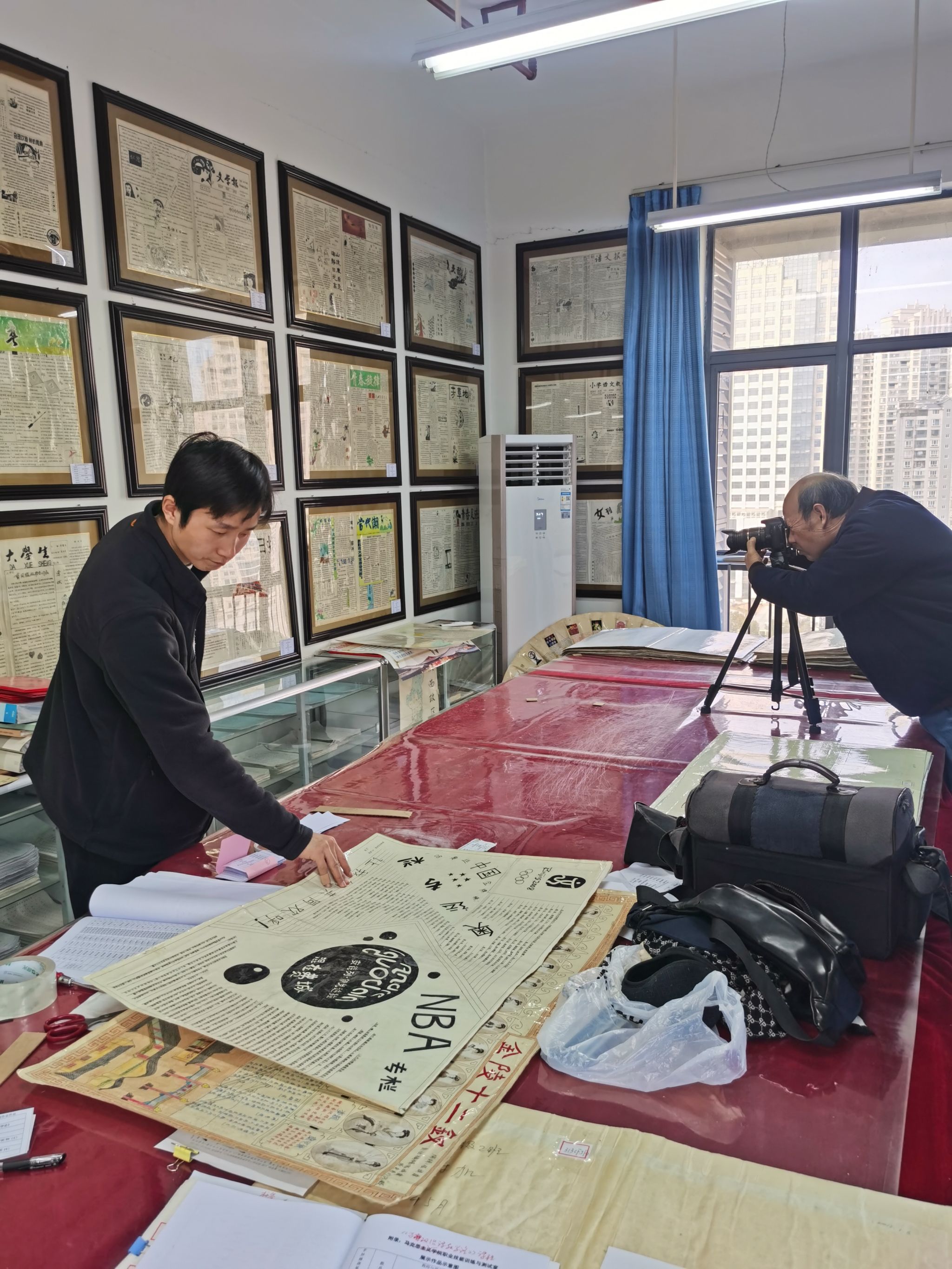 2024年1月7日-31日,何家理教授将所有作品从前至后在背面进行编号,制作标签,拍摄照片,纸质、电子双建档,可以网络查阅。教师刘涛、陈皓与思政2022级黄芬协助,长发摄影王怀长拍摄,共整理出 1005份作品(新增476份)。编印《作品目录》(1996-2023)(第1-3卷)。为省级一流课程资源库建设提供了重要的内容载体。