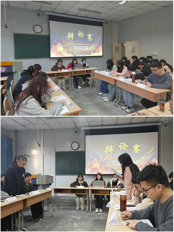 一时强弱在于力,万古胜负在于理,“辩论”作为一种文化,是老员工活中必不可缺少的一部分,“思辨”的精神也是同学们不可缺少的特质。辩论伊始,选手们相互介绍并问候在场所有人,紧接着,双方辩手都站在自己的辩题论点并结合现实事例有理有据、沉稳流利地反驳对方的观点,从一辩的阐述观点到四辩的总结观点都清晰明了,充分体现了同学们活跃的思维和出色的口才。现场氛围愈演愈烈,评委和观众们也凝神静听沉浸在辩手们滔滔不绝、唇枪舌剑的氛围中。